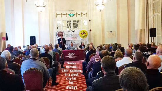 Sunday 15th October in the Adelphi Hotel in Liverpool saw a huge turn out of Greater Mersey Amal Branch members, from both of the Union’s constituencies – Telecoms & Financial Services and Postal – to hear the Union’s DGS(P) Terry Pullinger bringing the Branch up-to-date on the Postal member’s campaign; The Four Pillars.